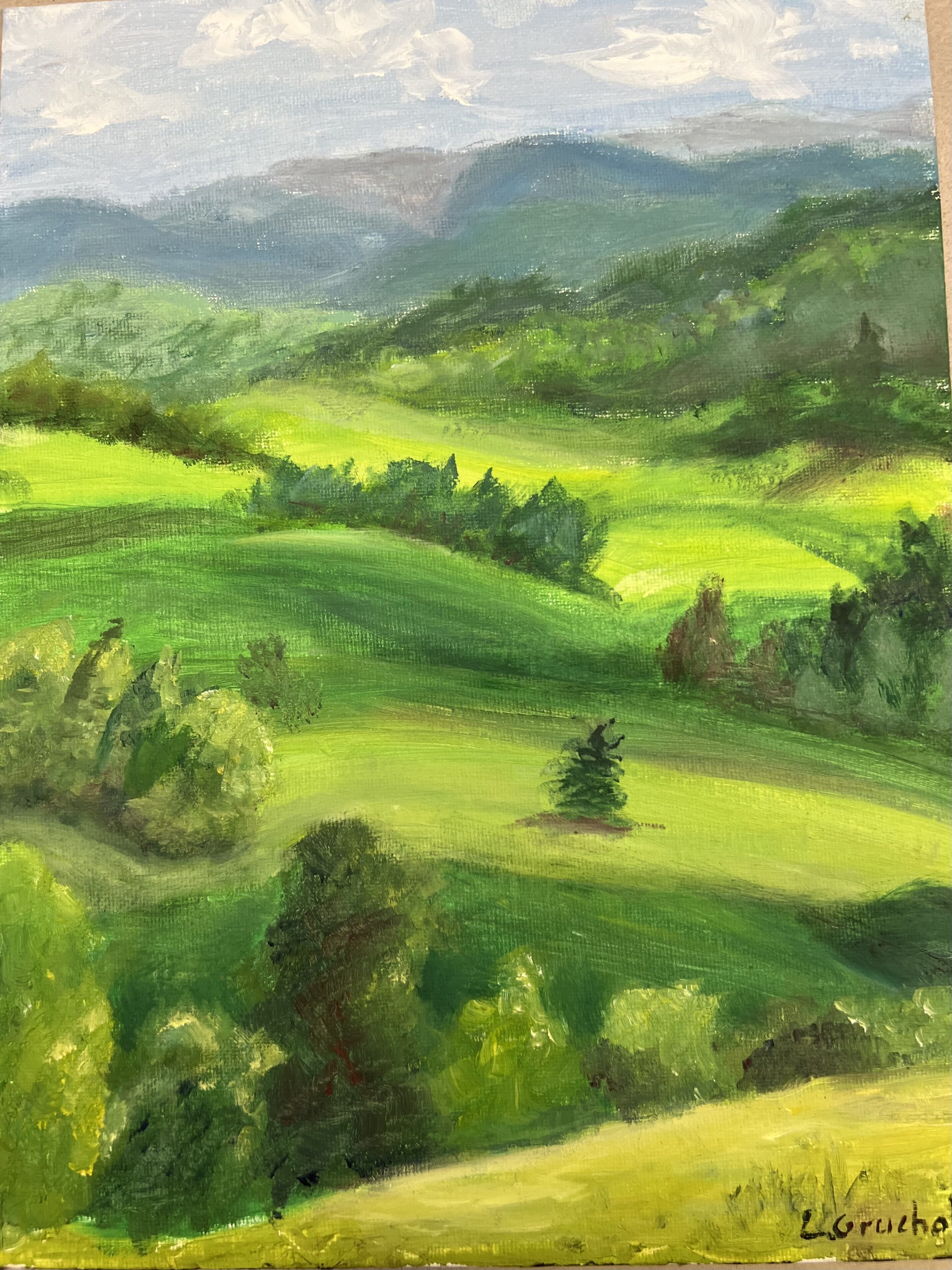 I grew up with a mother who painted and sketched in her free time for enjoyment. She encouraged that with her children. I never started painting until I retired and it has been a hobby of mine since. I love nature and painting because I find more to be restorative, similar to meditation. I have primarily painted from, first other artists then my own photographs. More recently, I have been attempting to put my own interpretation of a photograph by altering the composition and/or changing the colors. Most recently, I have been creating a few paintings from my imagination rather than a photograph. Mediums are watercolor and oil/water soluble oils.
