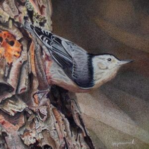 Colored Pencil, Nuthatch on Birch