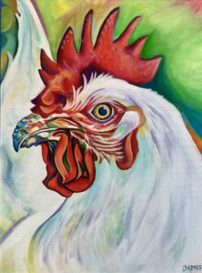 Rockin’ Rooster, acrylic on 9 x 12 canvas, 2025