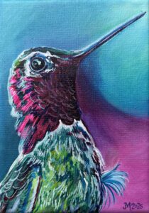 Even Hummingbirds Pause, acrylic on 5 x 7 canvas, 2025